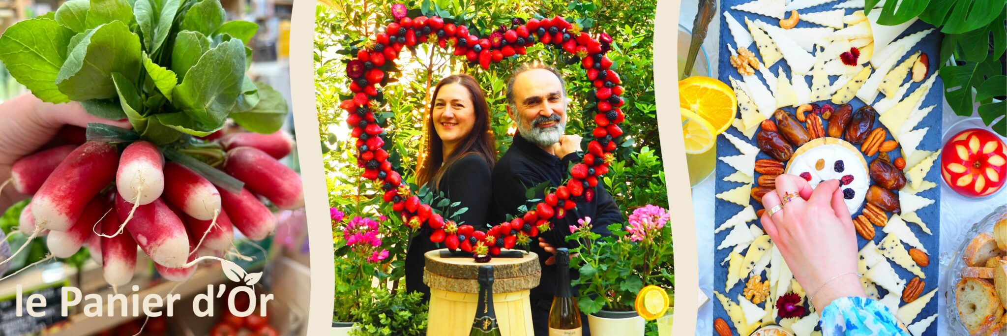 – de magnifiques « paniers gourmands » fruits, légumes, charcuterie, fromage, prêts à déguster, à emporter ou à livrer