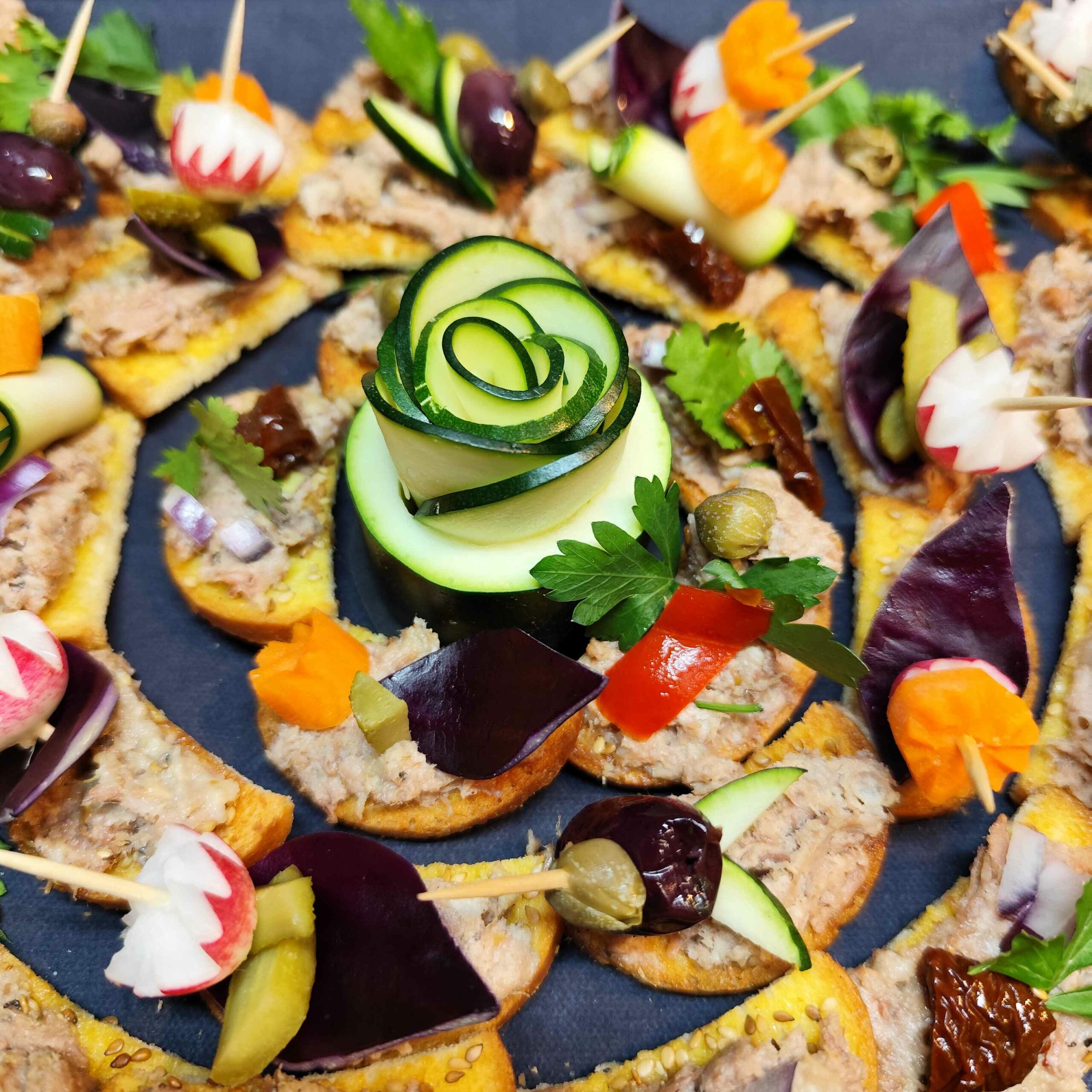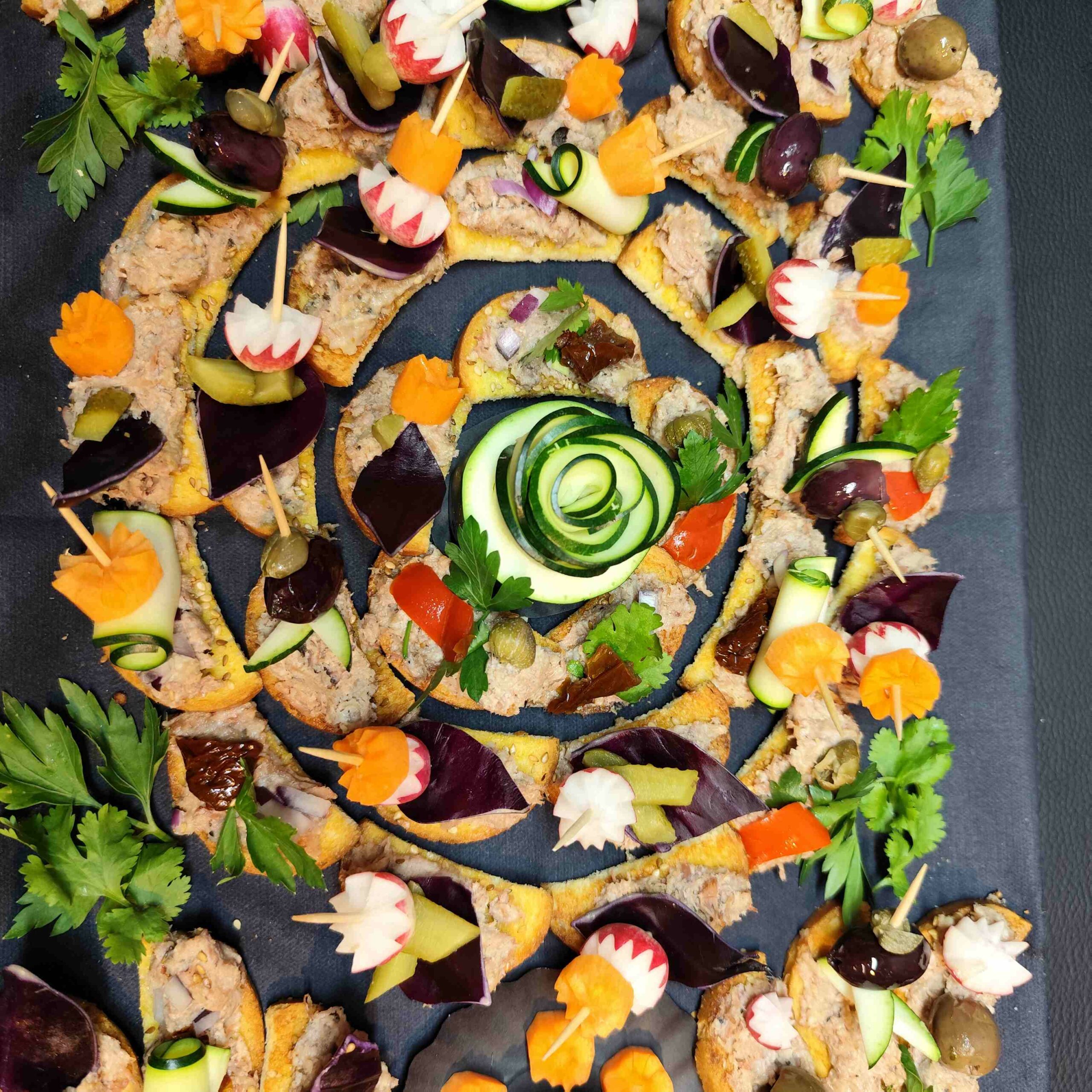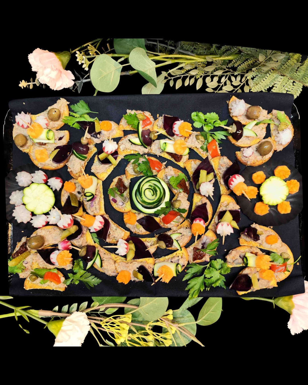 ROSACE de 43 tartines, dont 20 avec brochette de toppings gourmands.