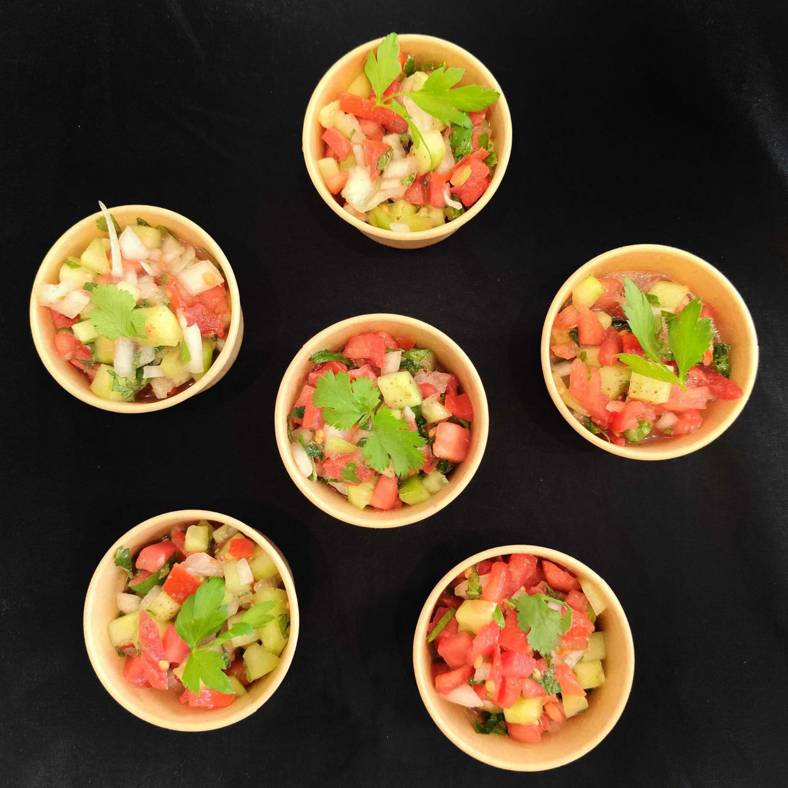 Une création exclusive du Panier d’Or, avec une recette familiale traditionnelle d’orient. Légère et désaltérante, cette salade croquante de concombre, tomate et oignon doux frais est délicatement relevée de citron et d’huile d’olive, puis parfumée d’herbes fraîches & de sumac, une épice orientale, pour une sensation vive et rafraîchissante. Parfaite pour sublimer vos cocktails dînatoires, anniversaires, fêtes de famille, séminaires, afterworks, soirées d’entreprise…